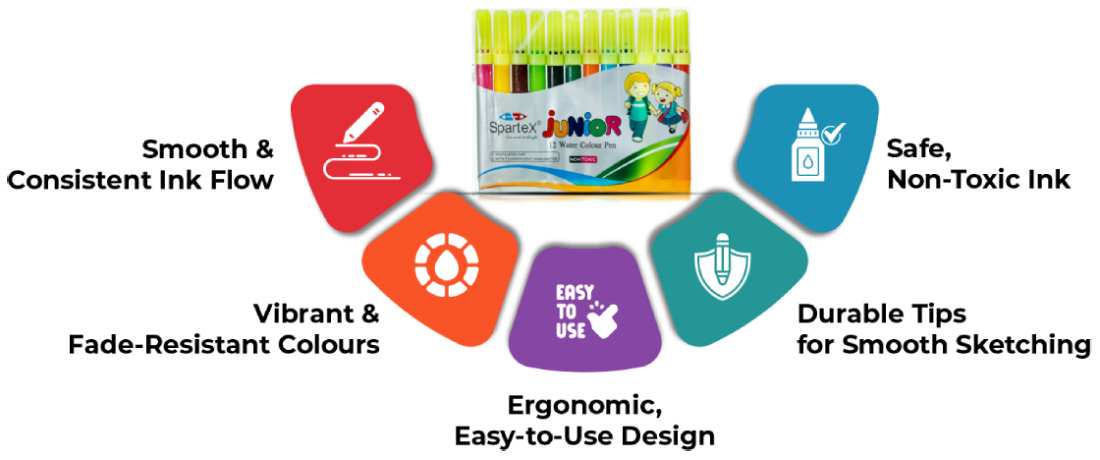Spartex uses premium-grade, non-toxic ink and durable pen tips to ensure superior writing and colouring performance. Whether it’s Spartex Writing Products or sketch pens for art, each product undergoes strict quality checks.